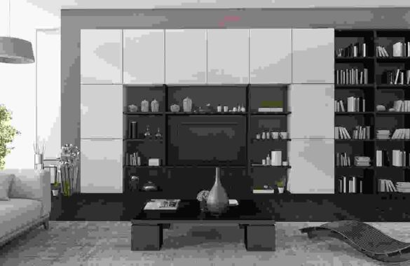 Black & white wooden wall unit for office